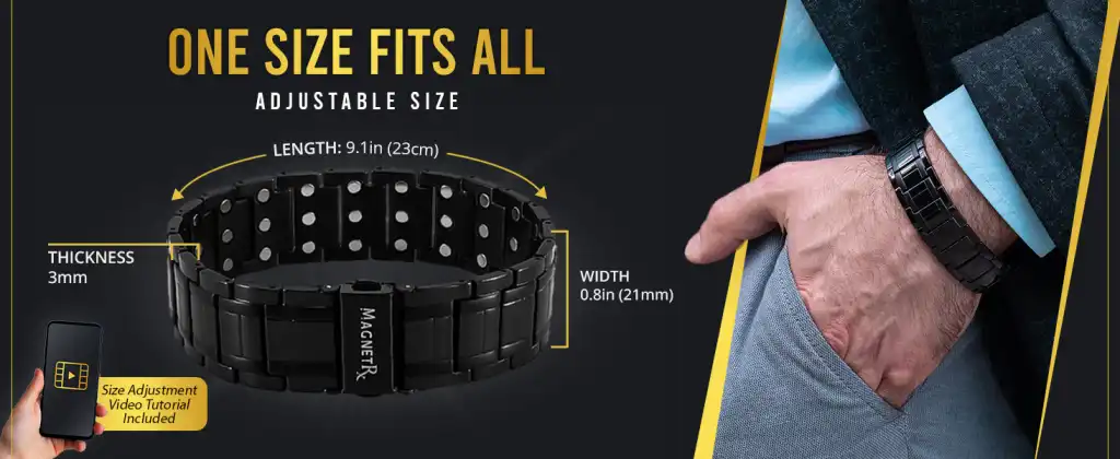Magnetické náramky MagnetRX® 3X pro muže – Efektivní titanový magnetický náramek pro muže – Prémiová spona a nastavitelná délka s nástrojem pro změnu velikosti a dárkovou krabičkou